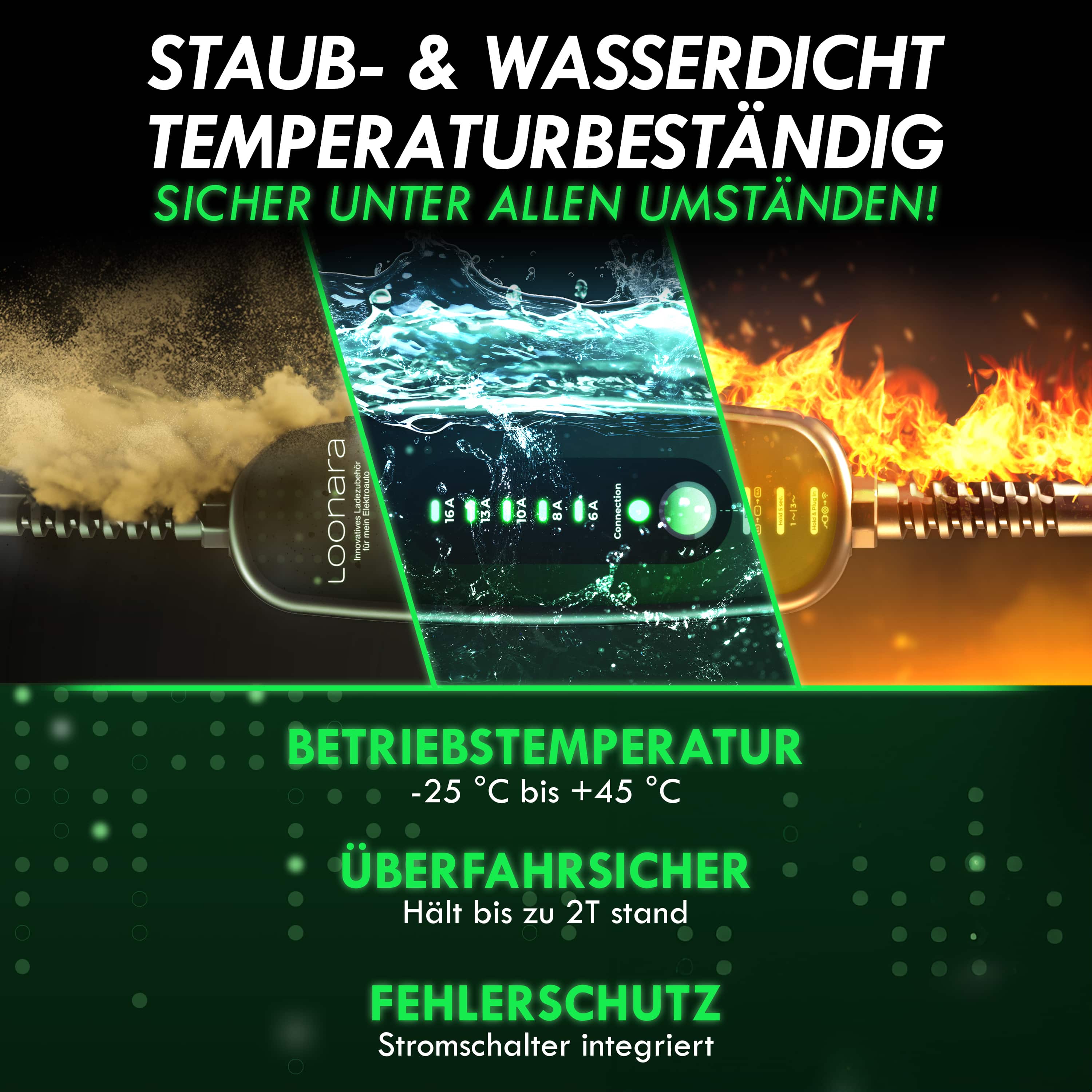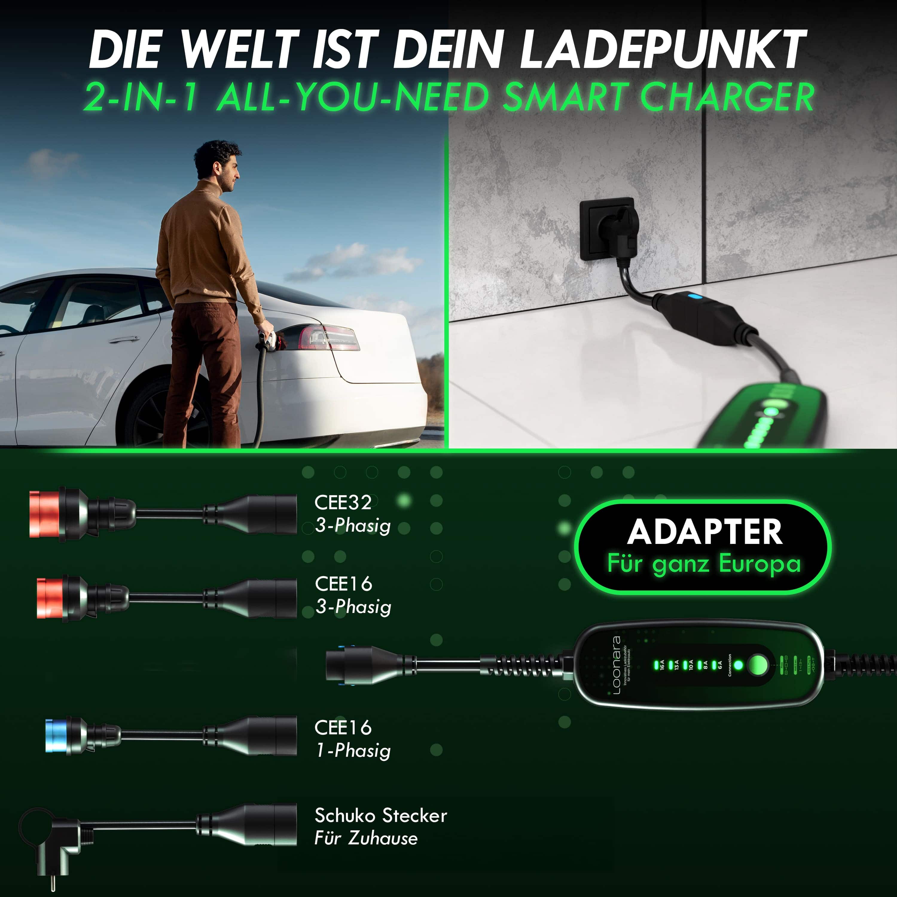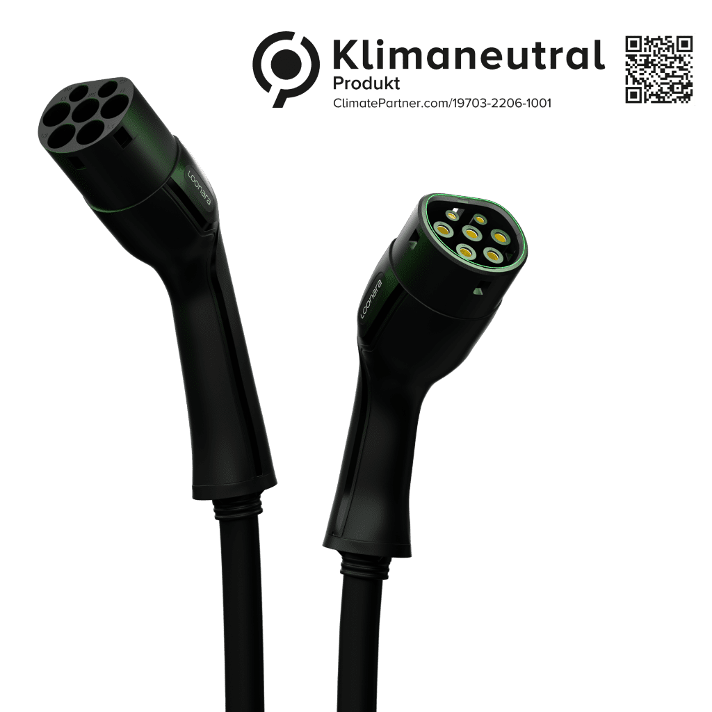 Sei jetzt noch umweltbewusster unterwegs! Mit den klimaneutralen Typ 2 Ladekabeln von loonara lädst du dein Elektrofahrzeug schnell und zuverlässig auf, während du gleichzeitig deinen CO2-Fußabdruck minimierst.